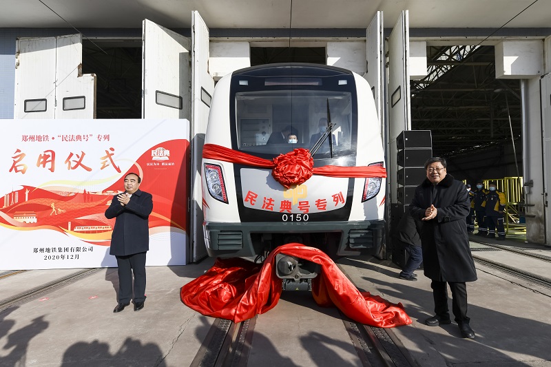 12月25日上午10點,鄭州地鐵集團有限公司在1號線車輛段召開“民法典號”專列啟動儀式。公司黨委書記、董事長、總經(jīng)理張洲,黨委委員、紀委書記鄭愛民,黨委委員、總經(jīng)理助理李亞軍,員工代表以及新聞界媒體人士約100人參加了啟動儀式。市委常委、政法委書記于東輝,省司法廳黨委委員、副廳長魯建學以及省市有關(guān)單位領(lǐng)導同志出席了啟動儀式。