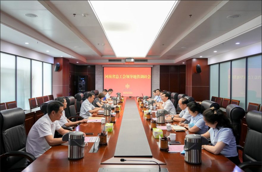 6月22日下午,河南省總工會(huì)副主席、黨組成員黃建中,省農(nóng)業(yè)交通建設(shè)工會(huì)主席張萌一行6人到地鐵集團(tuán)進(jìn)行調(diào)研。市總工會(huì)黨組成員、副主席杜建新等工會(huì)領(lǐng)導(dǎo)陪同調(diào)研。公司黨委副書(shū)記張軍、工會(huì)主席王世偉等參加了調(diào)研。