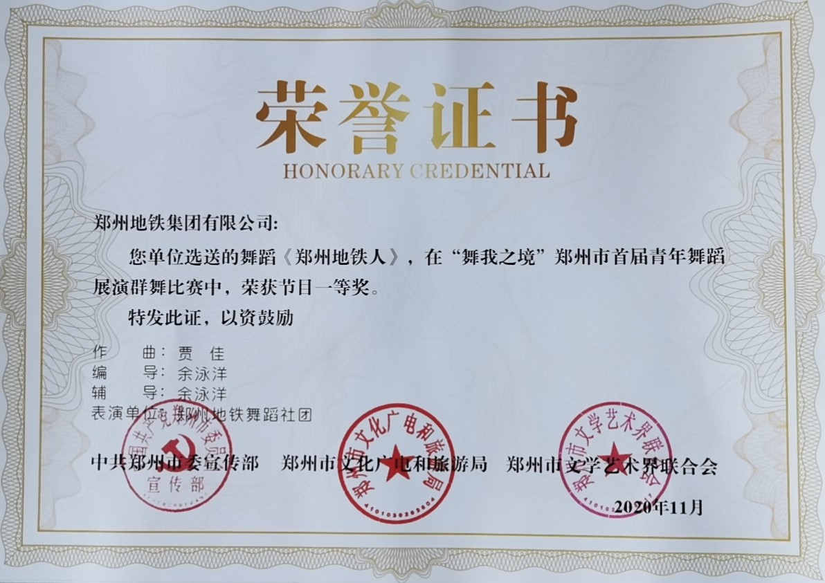 舞蹈《鄭州地鐵人》榮獲一等獎(jiǎng)