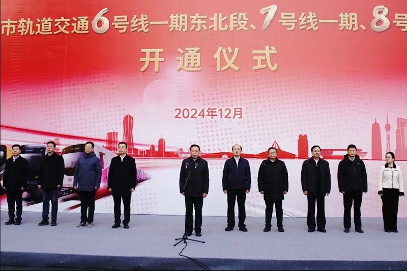12月29日上午,鄭州市軌道交通6號線一期東北段、7號線一期、8號線一期正式開通,標志著我市軌道交通運營里程躋身全國城市前10位、邁入世界級地鐵城市行列。省委常委、常務副省長孫守剛宣布3條線路開通運營,省委常委、市委書記安偉致辭。