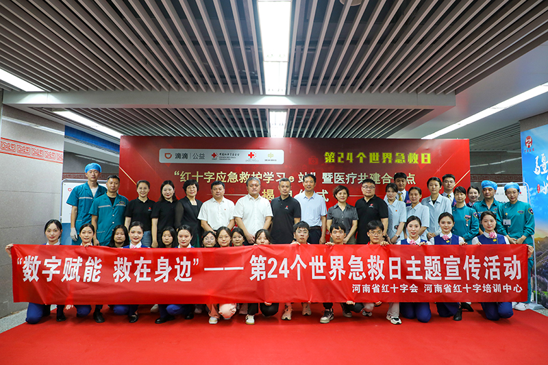 9月7日上午,在第24個“世界急救日”來臨之際,鄭州地鐵1號線紫荊山站內舉行了“紅十字應急救護學習e站”暨醫療共建合作點揭牌儀式。中國紅十字基金會應急救護項目中心主任張延超,河南省紅十字會黨組成員、秘書長劉瑞勇,鄭州市紅十字會黨組書記、常務副會長丁振勇,鄭州地鐵集團有限公司黨委副書記、總經理楊勇及多家醫療合作單位代表60余人參加揭牌儀式。