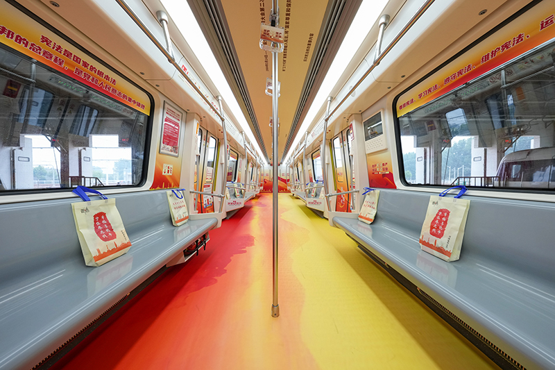 11307鄭州地鐵“法治號”專列啟用儀式在1號線鄭東車輛段舉行