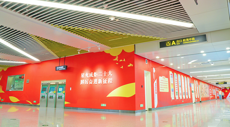 為充分發(fā)揮地鐵宣傳載體作用,將地鐵車站打造成為創(chuàng)新型、學(xué)習(xí)型的移動宣傳陣地,深入持久開展黨的創(chuàng)新理論學(xué)習(xí)宣傳,鄭州地鐵在5號線齊禮閻站打造“星火成炬二十大 踔厲奮進(jìn)新征程”黨建主題車站。