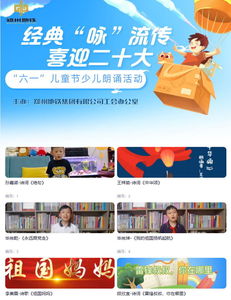 經(jīng)典“詠”流傳 喜迎二十大 ——鄭州地鐵工會開展“六一”兒童節(jié)少兒朗誦活動
