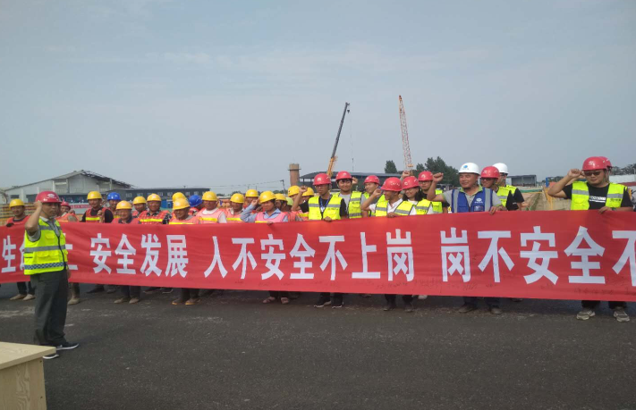 6月1日上午,鄭州市軌道交通5號(hào)線07標(biāo)及市政控制節(jié)點(diǎn)工程土建01標(biāo)項(xiàng)目部組織開展以《生命之上,安全發(fā)展》為主題的“安全生產(chǎn)月”宣誓活動(dòng)。